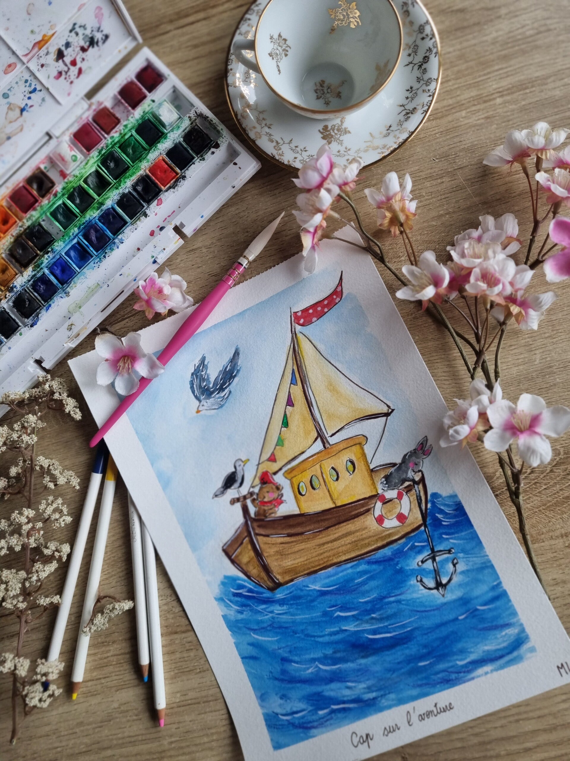 Impression haute qualité sur papier épais et texturé, pour préserver la finesse des détails et la délicatesse de l’aquarelle.