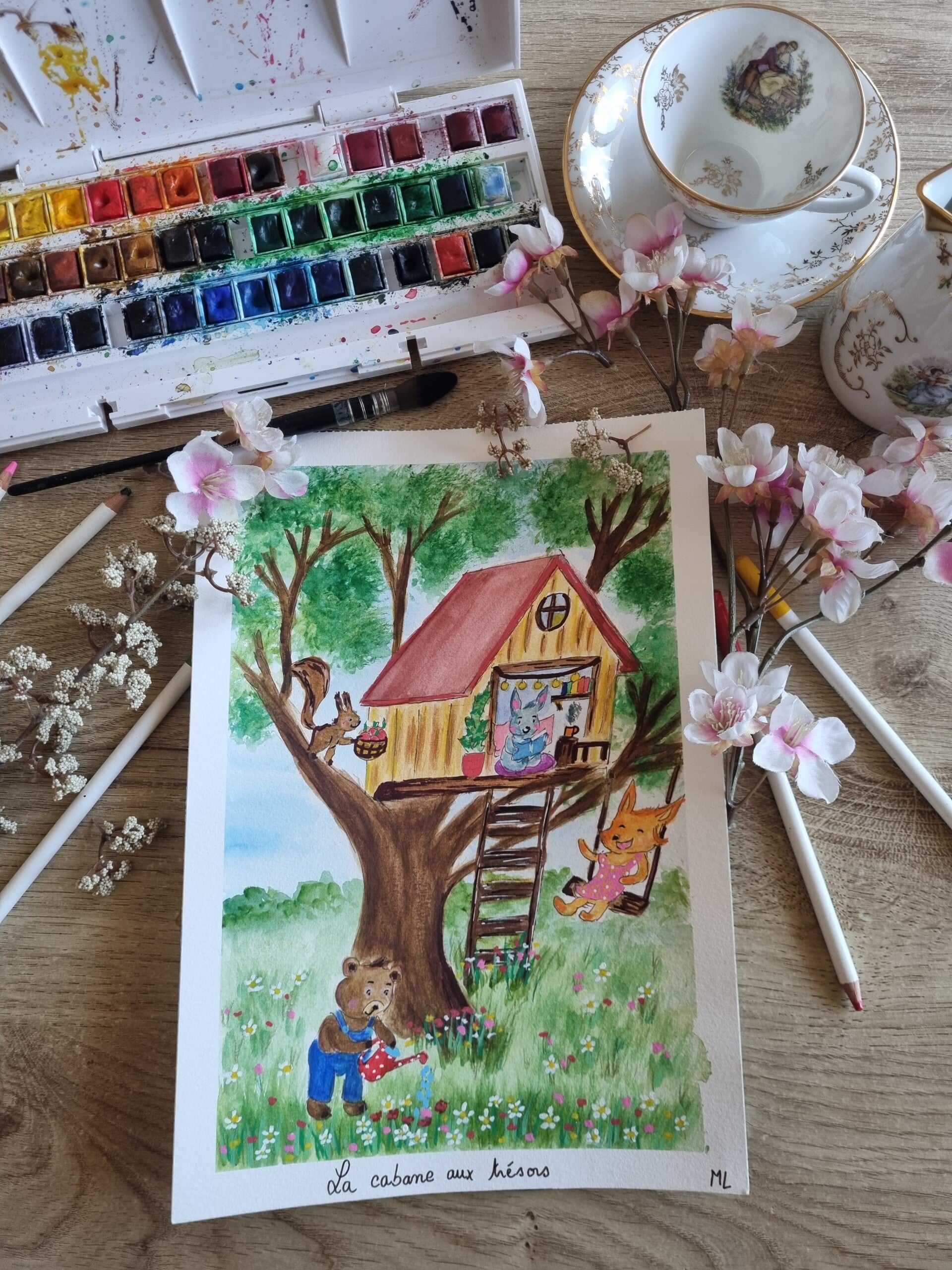 Impression haute qualité sur papier épais et texturé, pour préserver la finesse des détails et la délicatesse de l’aquarelle.